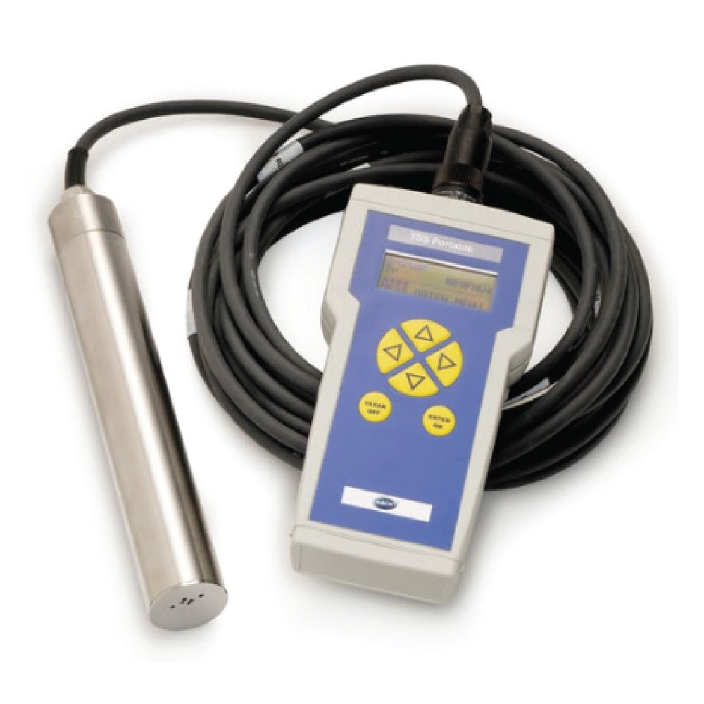 Hach’s TSS Meter Portable turbidity/TSS/sludge blanket level probe uses a unique multi-beam alternating light method with infrared diode system that gives it a broad measuring range for both turbidity and suspended solids in one portable hand-held instrument.